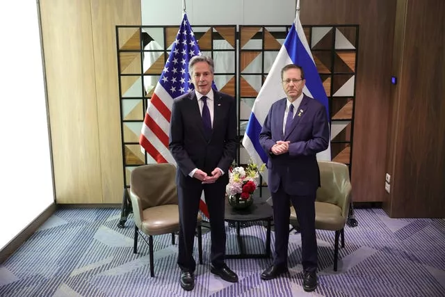 Mr Blinken told Israeli President Isaac Herzog at a meeting in Tel Aviv: “We are determined to get a ceasefire that brings the hostages home and to get it now, and the only reason that that wouldn’t be achieved is because of Hamas.