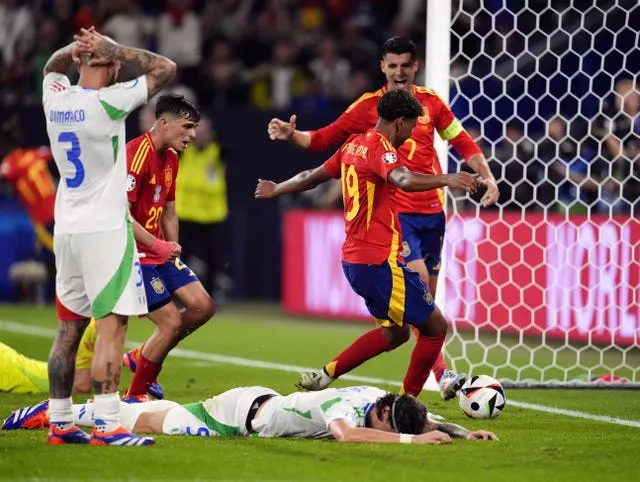 The defender’s misfortune 10 minutes after the break ultimately settled the Group B contest in Gelsenkirchen, although had it not been for the heroics of keeper Gianluigi Donnarumma, who made a string of fine saves, and the crossbar, which denied the impressive Nico Williams a deserved goal, the Spaniards would have prevailed in some comfort.