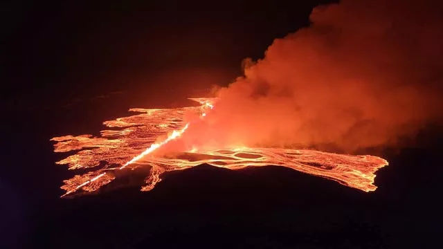 Iceland’s Meteorological Office said the eruption opened a fissure about two miles long between Stora-Skogfell and Hagafell mountains on the Reykjanes Peninsula.