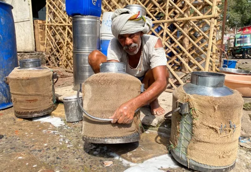 Dairy workers wrapped their cans with jute to keep the milk from spoiling. Construction workers hosed themselves down for a temporary respite from the soaring heat.