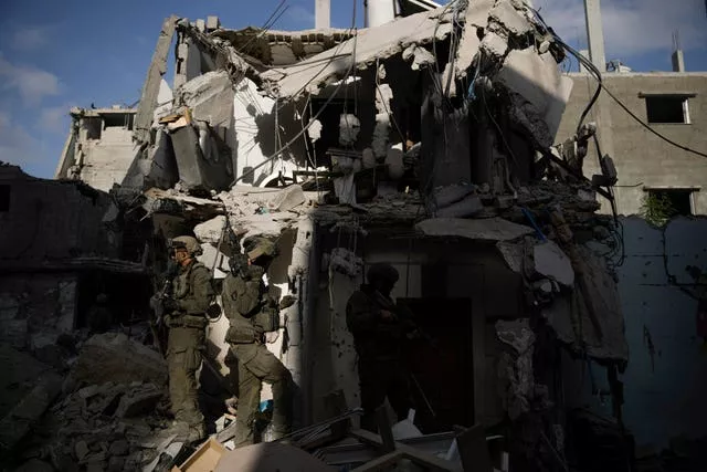Israeli soldiers following Israeli strikes during an attack in the Gaza Strip