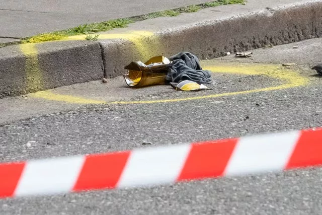 An object marked with a spray circle lies at the scene of an incident in Hamburg