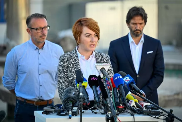 Hospital director Miriam Lapunikova speaks during a media briefing